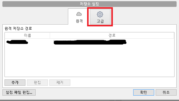 2. 저장소 설정 화면에서 고급 탭을 클릭한다