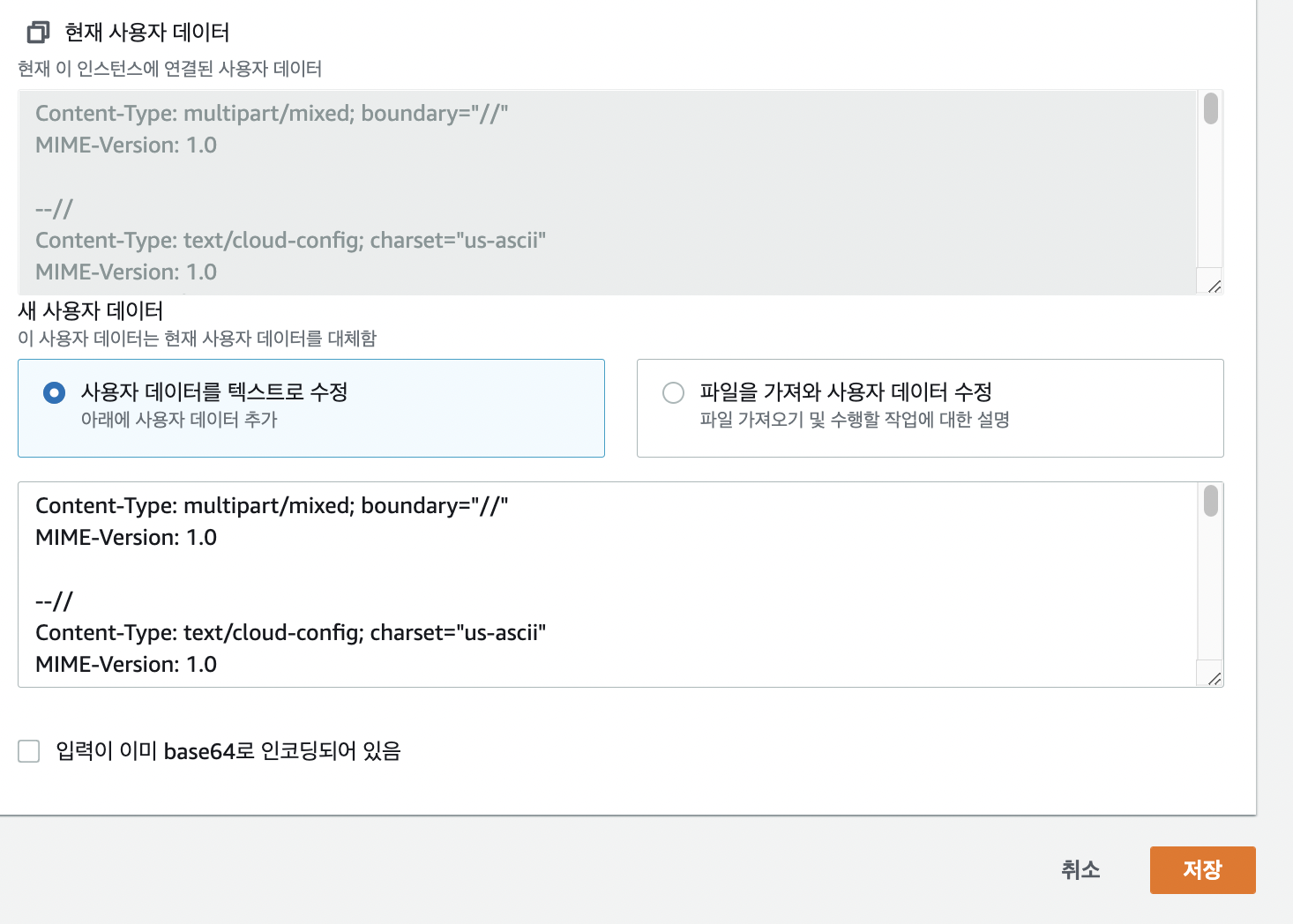 처음에는 EC2의 사용자 데이터에 스크립트만 입력을 해서 테스트를 해봤지만 스크립트는 실행이 되지 않았다.